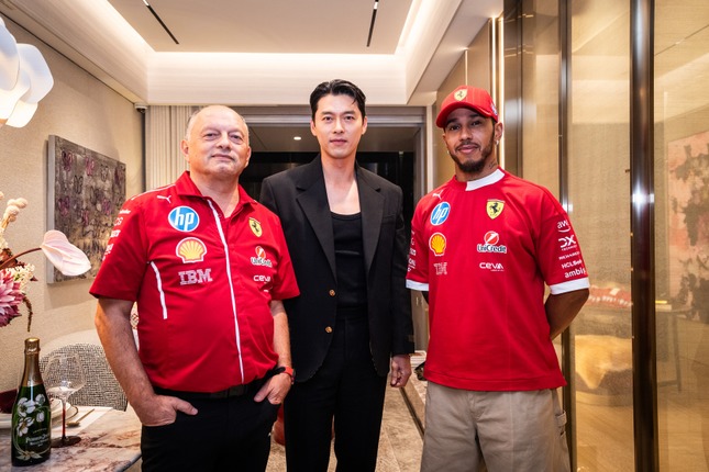Similarly, Korean superstar Hyun Bin created plenty of buzz as he appeared in the crowd and met up with seven-time world champion Hamilton.